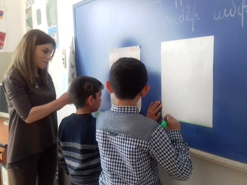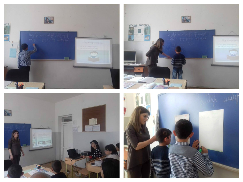 | 1.Օրվա իրադարձությունը՝  Բաց դաս: 2.Առարկան ՝ Մայրենի: 3.Դասի թեման/ վերնագիրը՝  <<Երգ ու տաղ>> բաժնի ամփոփում: 4.Կատարման ժամկետը՝ 13.04.2017թ.: 5.Պատասխանատուն՝ Հումանիտար մեթոդմիավորման նախագահ Մ. Կոստանյան: 6. Ուսուցիչ՝     Մ. Կոստանյան: 7.Նպատակ /ներ/ ը.    Ø Ամրապնդել և համակարգել աշակերտների ունեցած գիտելիքները թեմայից: 8.Համառոտ նկարագրությունը /կառուցվածքը, տարբեր մասերի կենսագործումը և այլն/: <<Մայրենի>> առարկայի մակարդակի ուսումնասիրության շրջանակներում տեղի ունեցավ բաց դաս 5-րդ դասարանում: Դասը սկսվեց այբբենական աղոթքով, թեման <<Երգ ու տաղ>> բաժնի ամփոփումն էր՝ նպատակ ունենալով ամրապնդել ու համակարգել աշակերտների ստացած գիտելիքները: Հարց ու պատասխանի և սալիկահանդեսի միջոցով աշակերտները վերհիշեցին և ամփոփեցին ամբողջ բաժնի նյութը: Քանի որ բաժնում տեղ գտած բանաստեղծությունները նաև երգվում են, հնչեց Գ.Սարյանի <<Կարոտ>> և Ս.Շահազիզի <<Երազ>> ստեղծագործությունները, որոնց ելևէջների ներքո աշակերտներն անհատական պաստառների վրա ամբողջացրին իրենց ստացած տպավորություններն ու պատկերացումները: Գրատախտակին