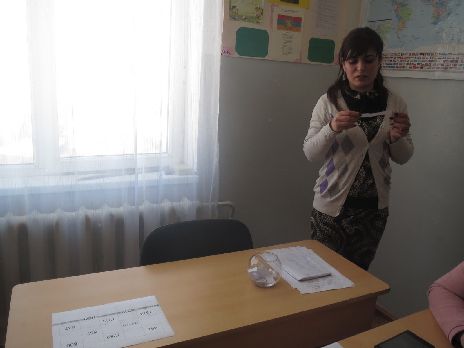 2.Անվանումը՝ <<Չկա պատմություն առանց ժամանակագրության>>: 3.Կատարման ժամկետը՝ 20.01.2017թ.: 4.Պատասխանատուն՝ Հումանիտար մեթոդմիավորման նախագահ Մ. Կոստանյան: 5. Կազմակերպիչ /ներ/ը՝ Պատմության ուսուցչուհի Ա. Առաքելյան: 6.Նպատակ /ներ/ ը. Ամրապնդել թեմաներից ստացած աշակերտների գիտելիքները, մասնավորապես համաշխարհային պատմության կարևոր իրադարձությունների տարեթվերը: Աշակերտների մեջ զարգացնել թիմով և անհատական աշխատելու հմտությունները: 7.Համառոտ նկարագրությունը /կառուցվածքը, տարբեր մասերի կենսագործումը և այլն/: 20.01.2017թ.-ին Եղեգի միջնակարգ դպրոցում լոտոյի տեսքով տեղի ունեցած խաղ-մրցույթը կրում էր պատմահայր Մովսես Խորենացու նշանավոր խոսքերը` <<Չկա պատմություն առանց ժամանակագրության>>: Մրցույթը կայացավ չորս փուլով, երկու թիմերի միջև` <<Բլիցկրիգ>> և << Ռենեսանս>>: Ամեն փուլ ընդգրկում էր տասը հարց: Ուսուցչուհի Ա. Առաքելյանը վիճակահանությամբ ընթերցում էր իրադարձությունը, իսկ աշակերտները համապատասխան տարեթվով լոտոյի խաղաքարը դնում էին խաղաքարտի համապատասխան տարեթվերի վրա: Թիմերի աշխատանքը հսկում էին դիտորդ-ուսուցիչները, ովքեր թիմի սխալվելու դեպքում հեռացնում էին խաղաքարը քարտից և վերջում հայտարարում թիմերի վաստակած միավորները: Երկու խմբերն էլ դրսևորեցին ակտիվություն: Հաղթող ճանաչվեց << Ռենեսանս>> թիմը: Թիմային մրցակցությունից հետո ամեն թիմից երկուական մասնակիցների միջև սկսվեց անհատական պայքար` բլից հարցերով: Անհատական պայքարում հաղթեց 10-րդ դասարանի աշակերտուհի Սվետլանա Գրիգորյանը: Հաղթող թիմն ու Սվետլանա Գրիգորյանը դպրոցի տնօրենի կողմից պարգևատրվեցին պատվոգրերով: 8.Կահավորվածությունը՝ լավ: 9.Մասնակցում էին 7-12-րդ դասարանների աշակերտները: 10.Ակտիվ էին. 8-րդ դասարանի աշակերտներ Մարգարիտա Գևորգյանը, Հրանտ Գևորգյանը, Էդիկ Առաքելյանը, 9-րդ դասարանի աշակերտ Էրիկ Սահակյանը, 10-րդ դասարանի աշակերտուհի Սվետլանա Գրիգորյանը, 11-րդ դասարանի աշակերտ Գառնիկ Սահակյանը: