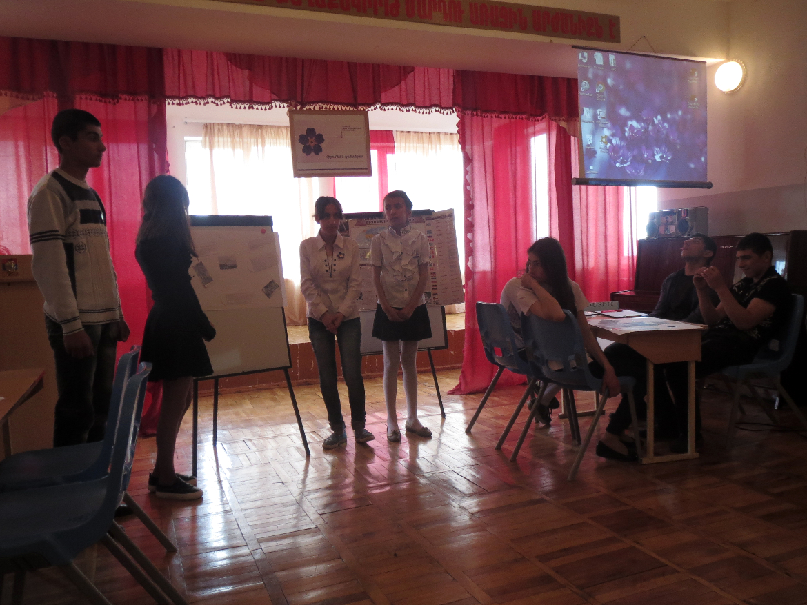 2.Անվանումը՝ <<Ապրելու ապրիլ>>: 3.Կատարման ժամկետը՝ 21.04.2017թ.: 4.Պատասխանատուն՝ Հումանիտար մեթոդմիավորման նախագահ՝ Մ. Կոստանյան: 5. Կազմակերպիչ /ներ/ը՝ Պատմության ուսուցչուհի՝ Ա. Առաքելյան: 6.Նպատակ /ներ/ ը. · Հիշատակել Հայոց ցեղասպանության 102-րդ տարելիցը: · Գնահատել 1915թ. ինքնապաշտպանական հերոսամարտերի պատմական նշանակությունը Մեծ եղեռնի օրերին: 7.Համառոտ նկարագրությունը /կառուցվածքը, տարբեր մասերի կենսագործումը և այլն/: Դաս-միջոցառման սկզբում 7-12-րդ դասարանների աշակերտները ներկայացրեցին կարևոր տեղեկություններ Մեծ եղեռնից, ապա հանդես եկան բանաստեղծական հուզիչ տողերով:Թեկուզև չեն սպիանում անցած դարի վերքերը, չեն դադարում նաև կարոտի երգերը…հայի ճակատագիրն է՝ ապրել ու արարել… Այնուհետև աշակերտները անդրադարձան 1915թ. Վանի և Սուետիայի ինքնապաշտպանական մարտերին՝ որպես հայ ժողովրդի պատմության հերոսական դրվագների՝ բարձր գնահատելով հայերի ոգու արիությունն ու կենաց մահու պայքարը եղեռնական օրերին: Միջոցառումն ավարտվեց մոմավառությամբ: Ամեն վառվող մոմալույսի ճրագը լուռ, Մի խորտակվող տիեզերքի պատմություն է անսքող, Մի խաչքարի տառապանք է սիրտ ապշեցնող, Իրար ձուլված ցավերի կայծակնային բռնկում է հոգեցունց… 8.Կահավորվածությունը՝ լավ: 9.Մասնակցում էին ՝ 7-12-րդ դասարանների աշակերտները: 10.Ակտիվ էին. Մասնակից բոլոր աշակերտները: 11. Ներկաները. Դպրոցի տնօրեն՝ Մ. Գանդալյանը, ուսուցիչներ, աշակերտներ:
