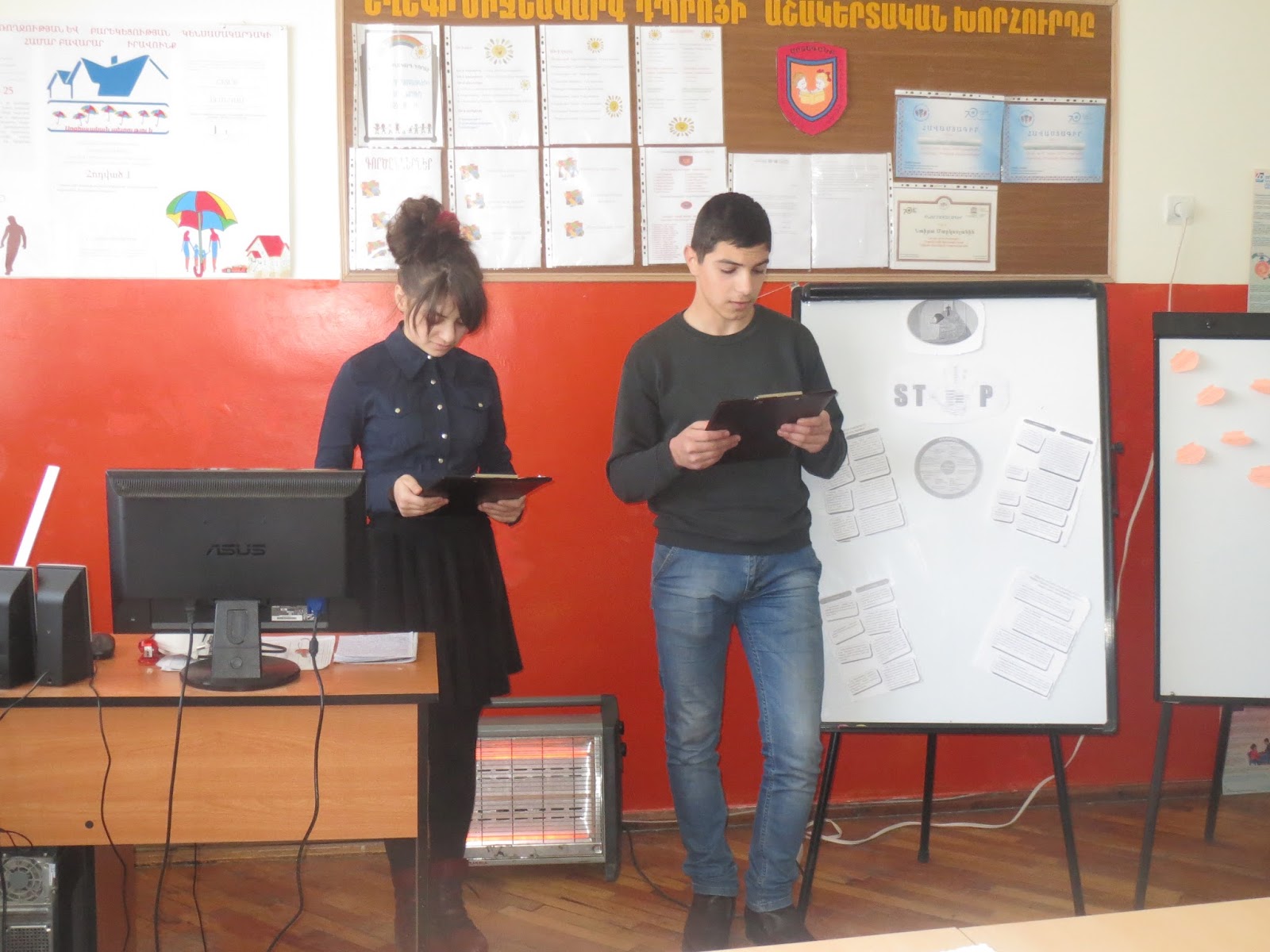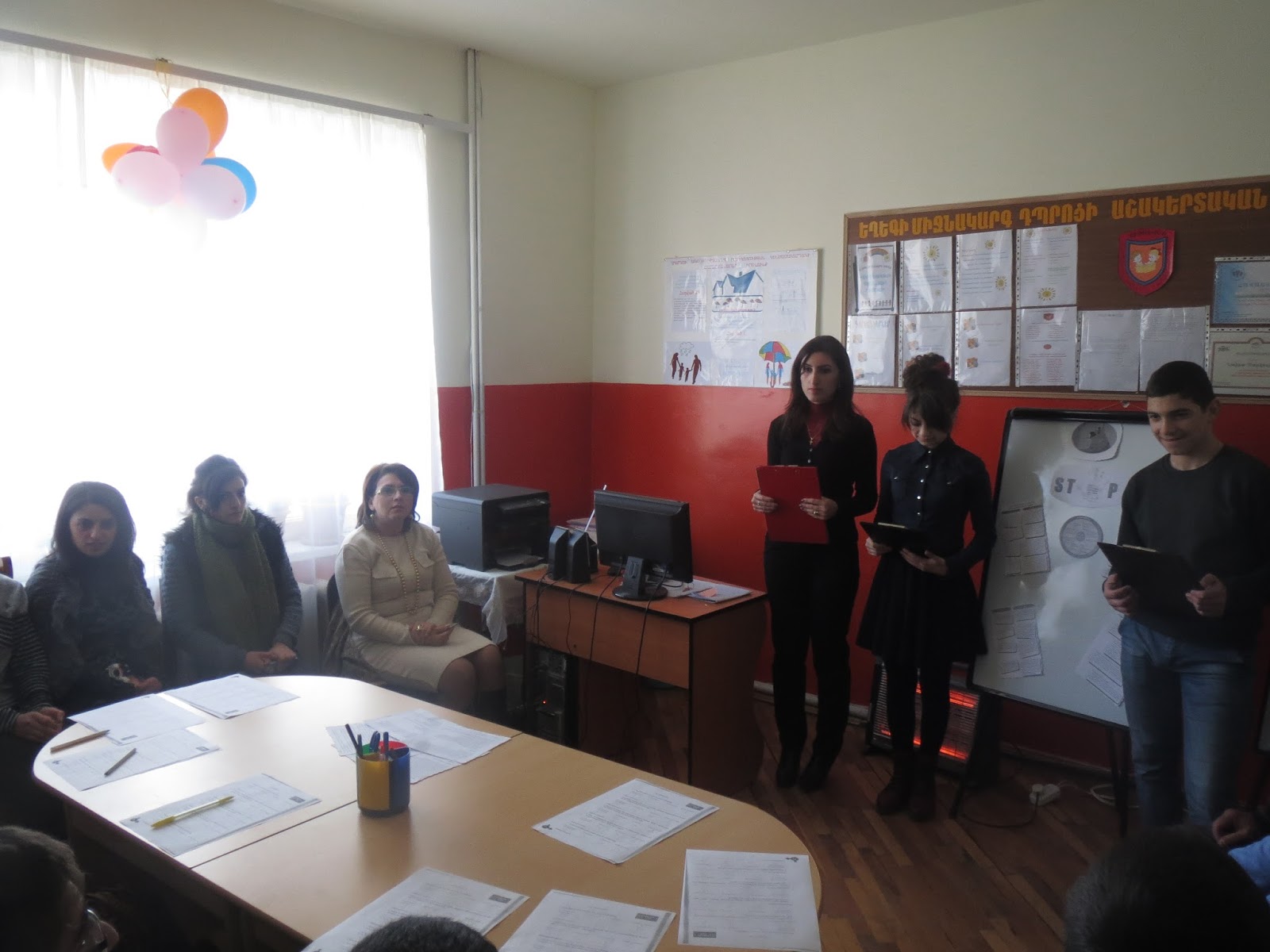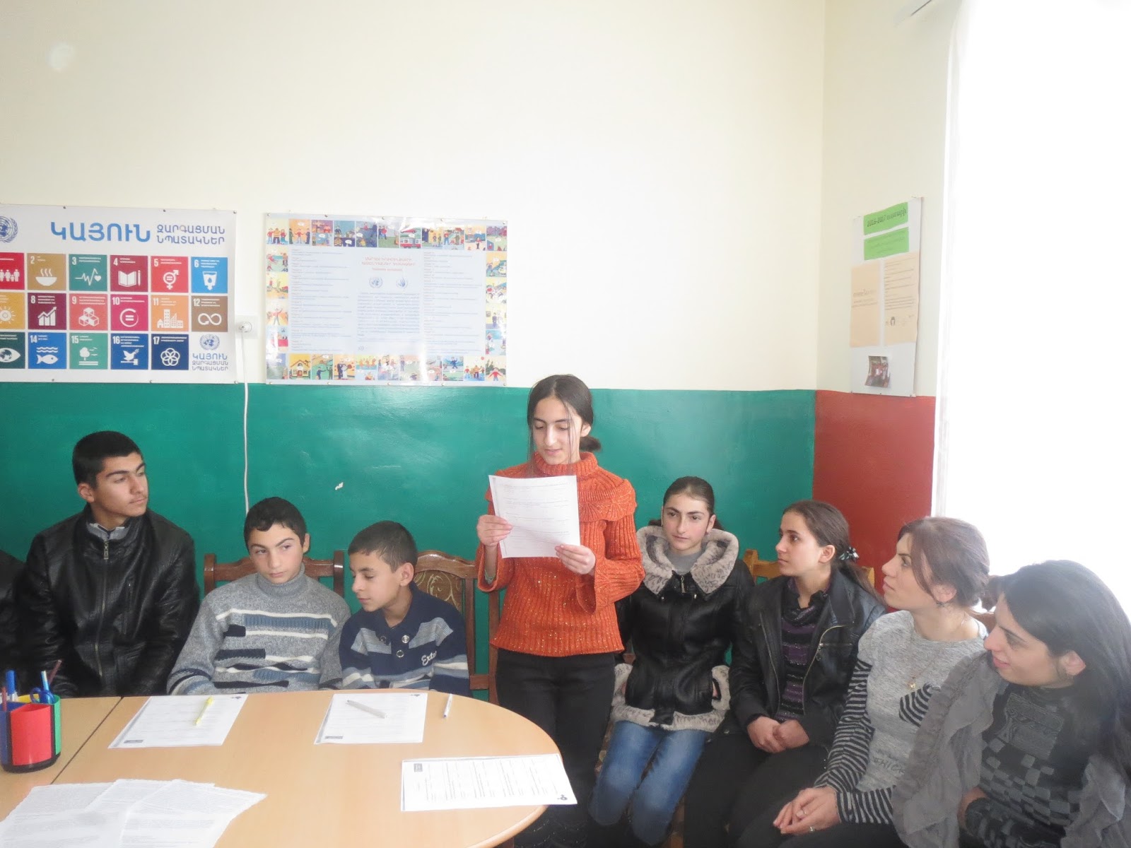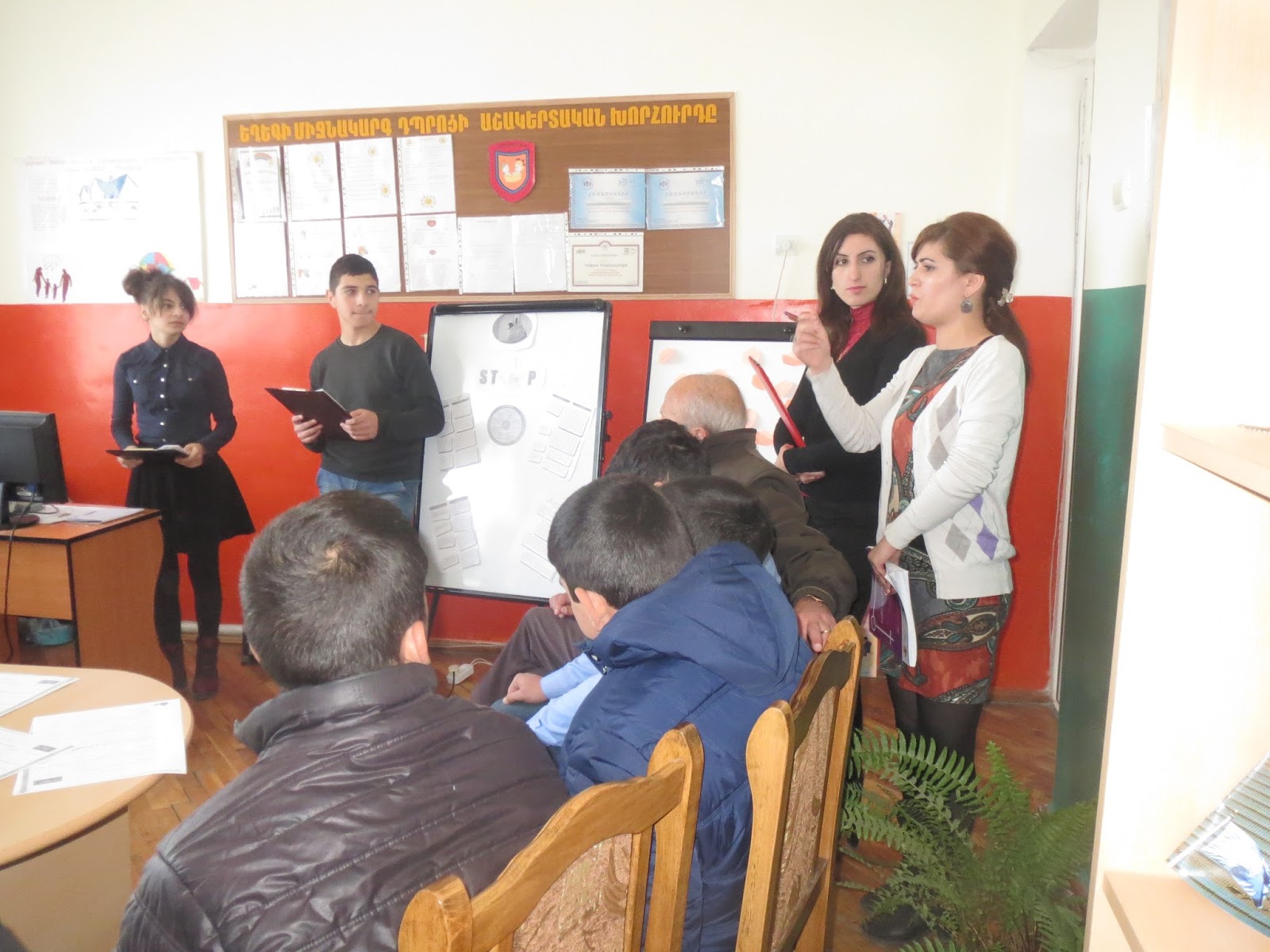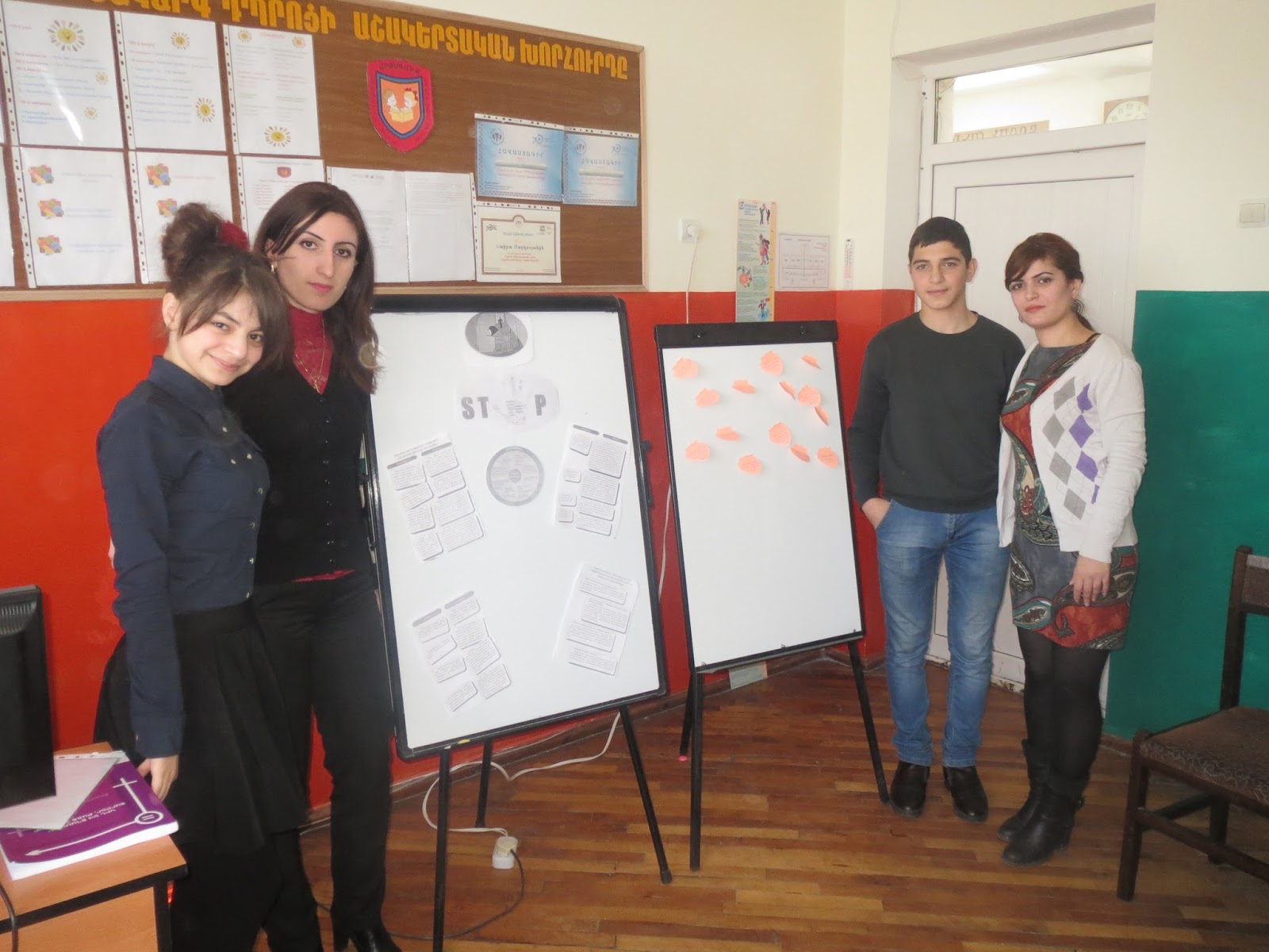 զարգացման նպատակներից մեկը:Նախ աշակերտները մտագրոհի միջոցով վերհիշեցին ՝ ինչ է բռնությունը, որոնք են նրա տեսակները , բռնության որ ձևերն են առավել տարածված: Այնուհետև հարցաթերթիկների միջոցով պարզեցին , թե ինչ վերաբերմունք ունեն դպրոցի աշակերտները և ուսուցիչները կանանց իրավունքների, հասարակությունում նրանց դերի և նրանց նկատմամբ կիրառվող բռնությունների նկատմամբ: